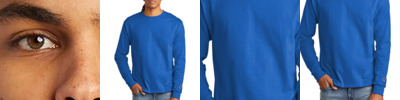 7-ounce, 100% cotton 99/1 cotton/poly (Ash) 60/40 cotton/poly (Charcoal Heather) 90/10 cotton/poly (Oxford Grey) Bound, ribbed crewneck Deep armholes Double-needle sleeves and hem Champion C logo on left sleeve Woven back neck label